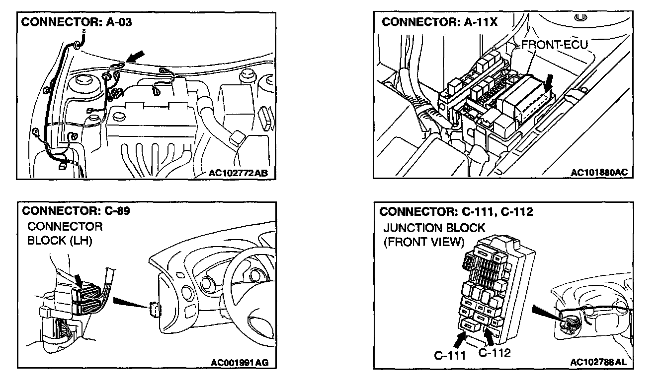 STEP 8. Check the front-ECU connector A-11X for damage.