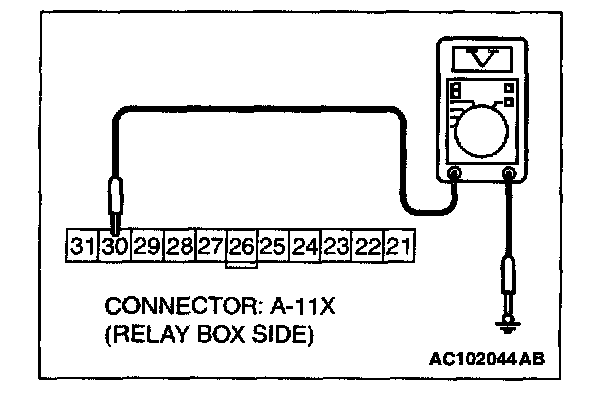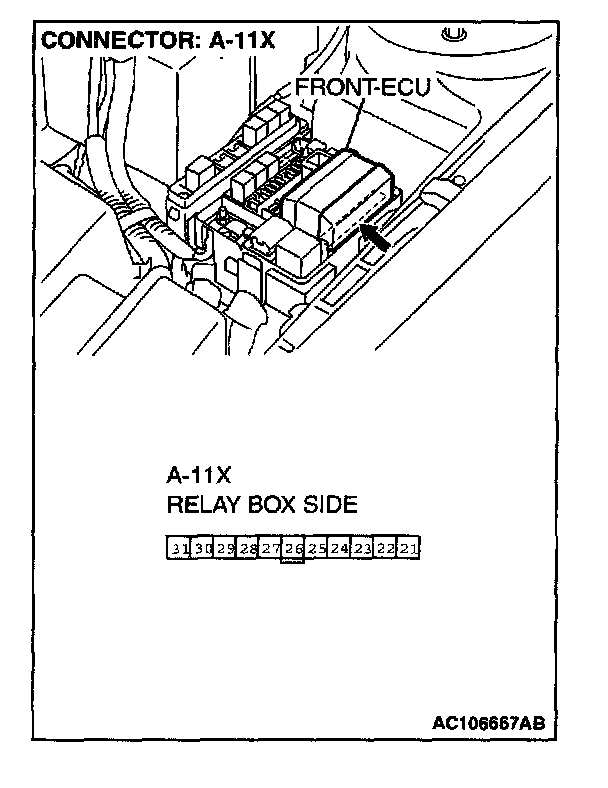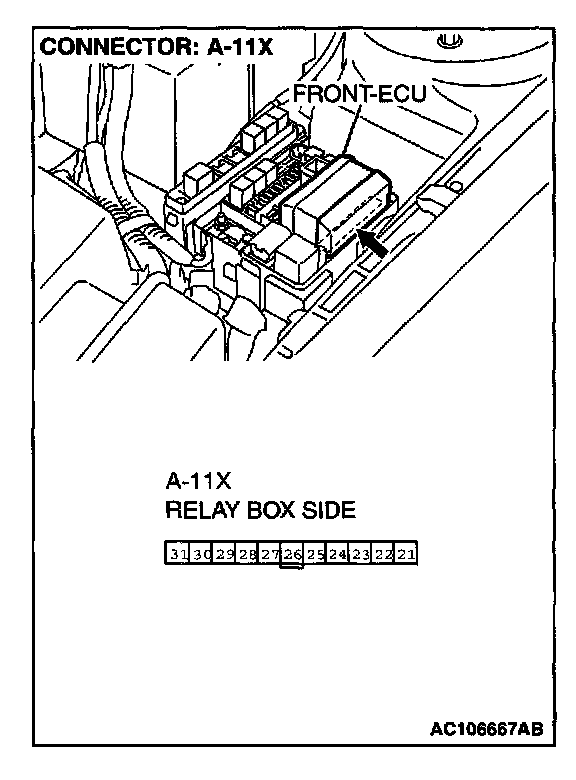 1. Disconnect front-ECU connector A-11X, and measure at the relay box side.