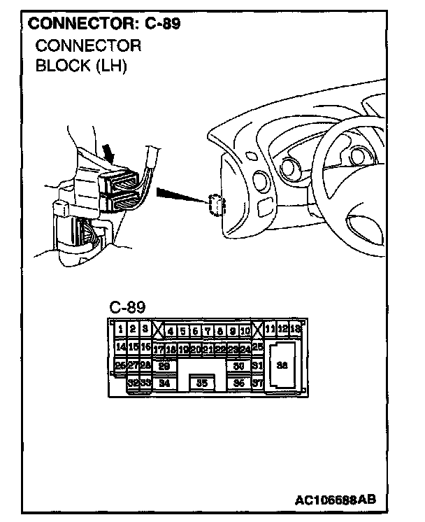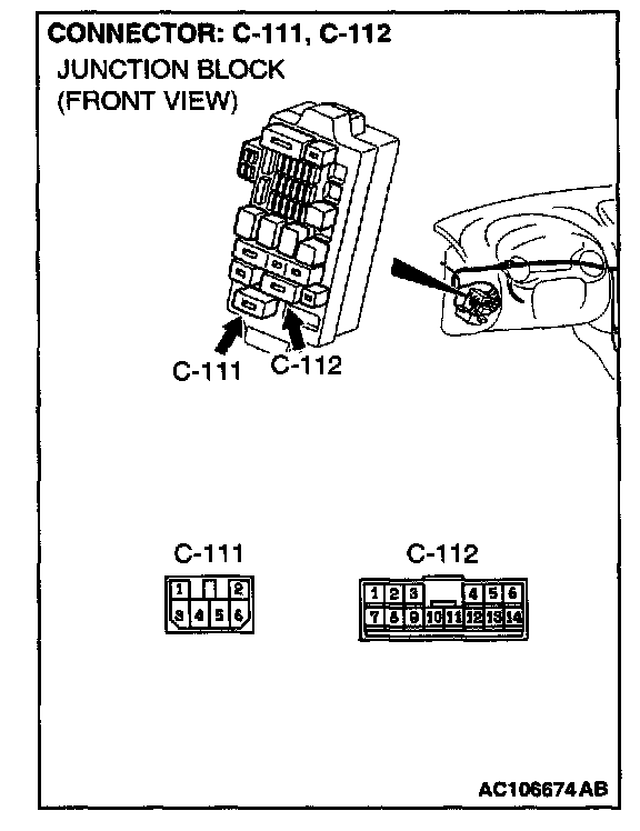 NOTE: Also check intermediate connector C-89, junction block connectors C-111 and C-112. If intermediate connectors C-89 or junction block connector C-111 or C-112 is damaged, repair or replace the connector as described in Harness Connector Inspection.