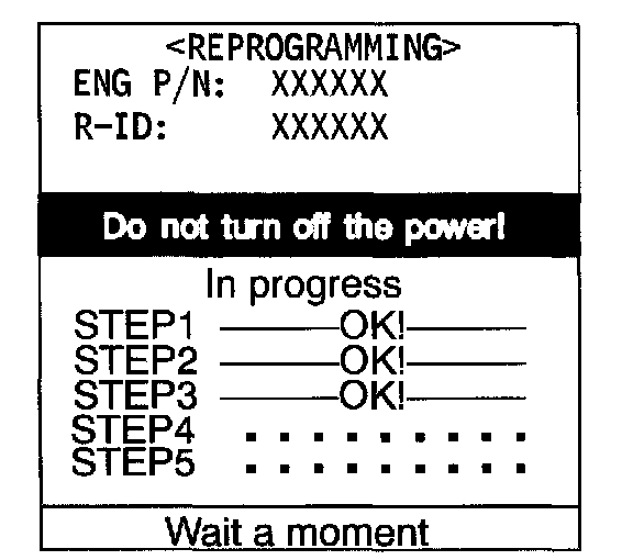 13. The MUT-II will display this screen as it reprograms the PCM. It will take approximately 15 minutes to complete.