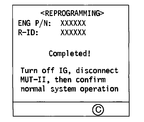To verify that the correct reprogramming has been made, the ROM ID number will display on the MUT-II screen. Note this number. The table in Attachment A lists the ECU part numbers and ROM ID numbers that should display after reprogramming, and their corresponding vendor numbers.