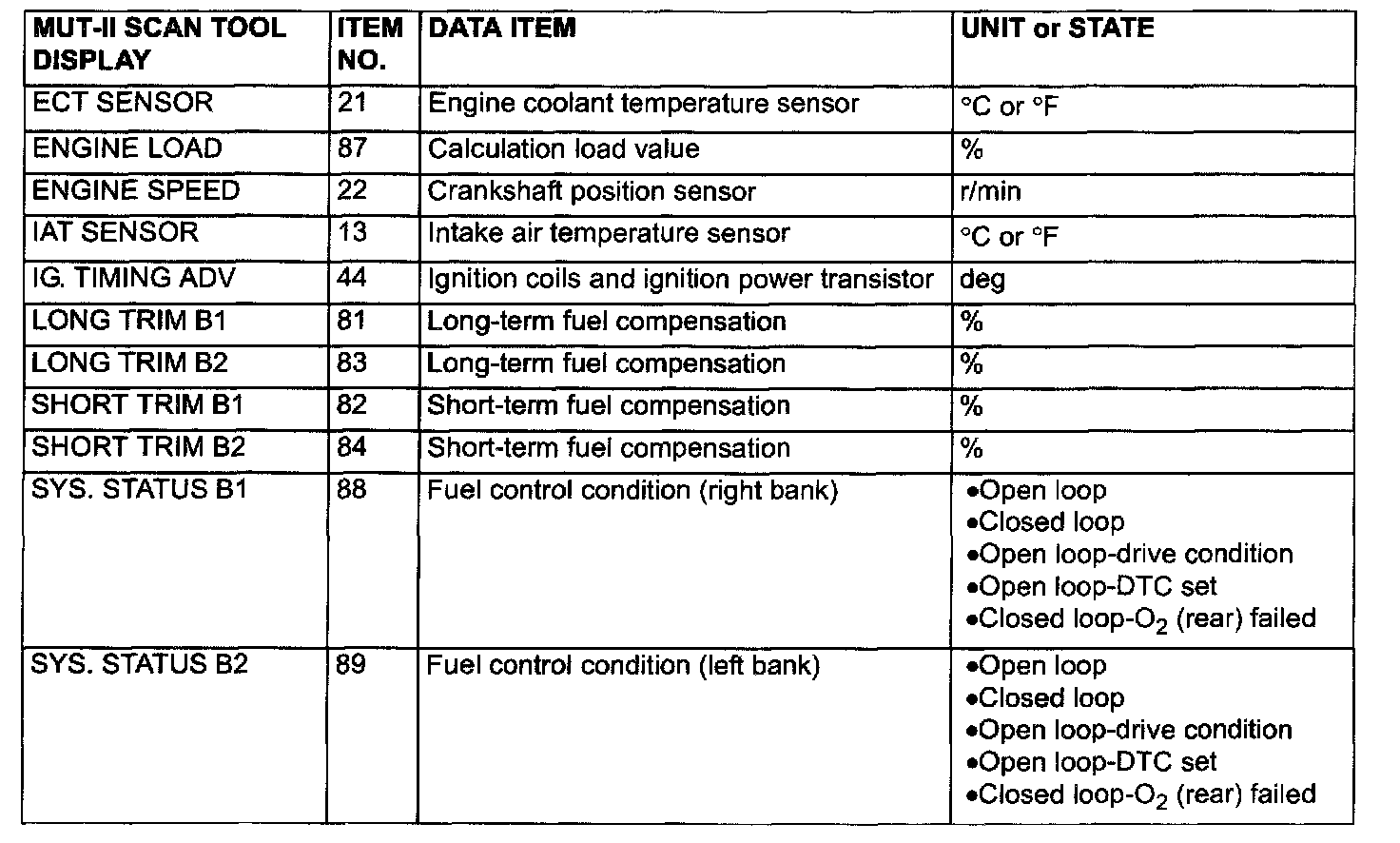 NOTE: As for diagnostic trouble code P1603, "freeze frame" data is not memorized.
