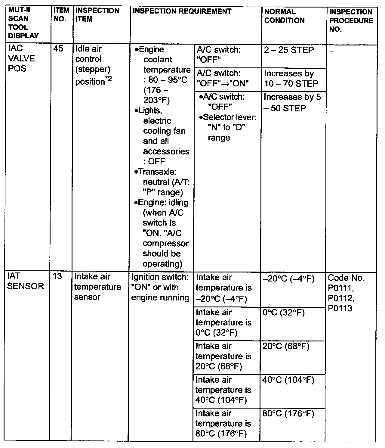 NOTE: *2: In a new vehicle [driven approximately 500 km (311 mile) or less], the step of the stepper motor is sometimes 30 steps greater than the standard value.