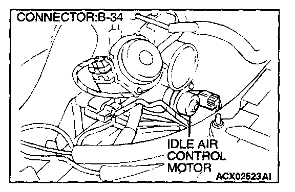 2. Check the operation sound of the IAC motor can be heard after the ignition is switched to the "ON" position (but without starting the engine).