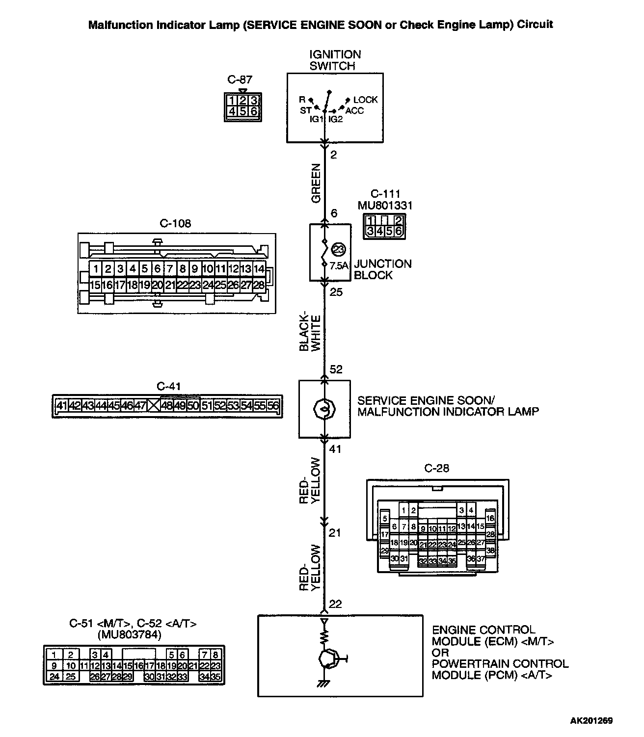 - Defective malfunction indicator lamp (SERVICE ENGINE SOON or check engine lamp) circuit.