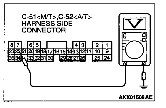 3. Measure the voltage between terminal 22 and ground.