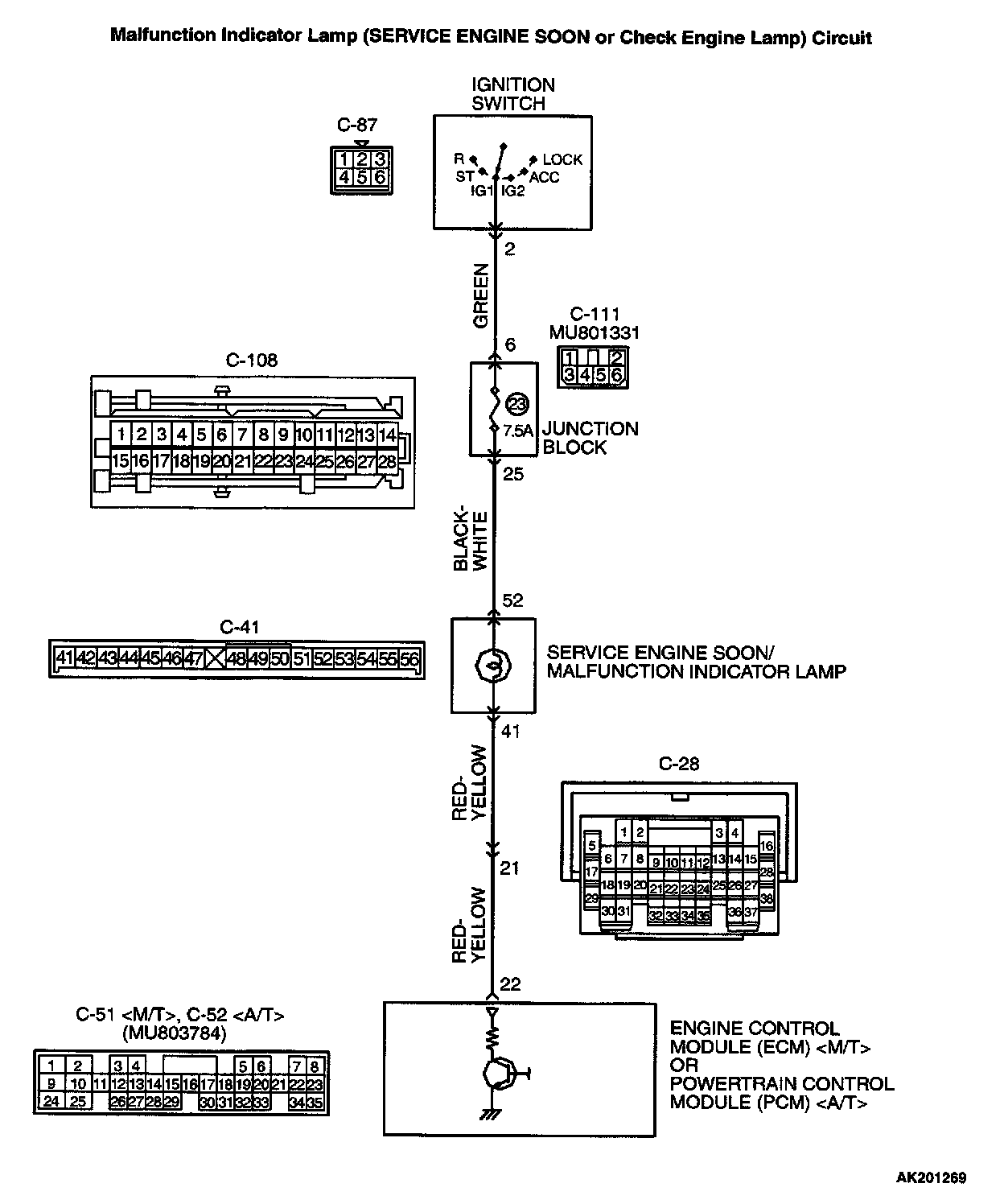 The Malfunction Indicator Lamp (SERVICE ENGINE SOON or Check Engine) Remains Illuminated and Never Goes Out.Malfunction Indicator Lamp (Service Engine Soon Or Check Engine Lamp) Circuit Part 1: