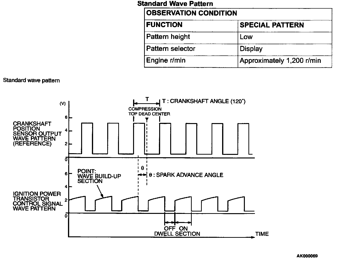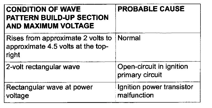 Point: Condition of wave pattern build-up section and maximum voltage (Refer to abnormal wave pattern examples 1 and 2.