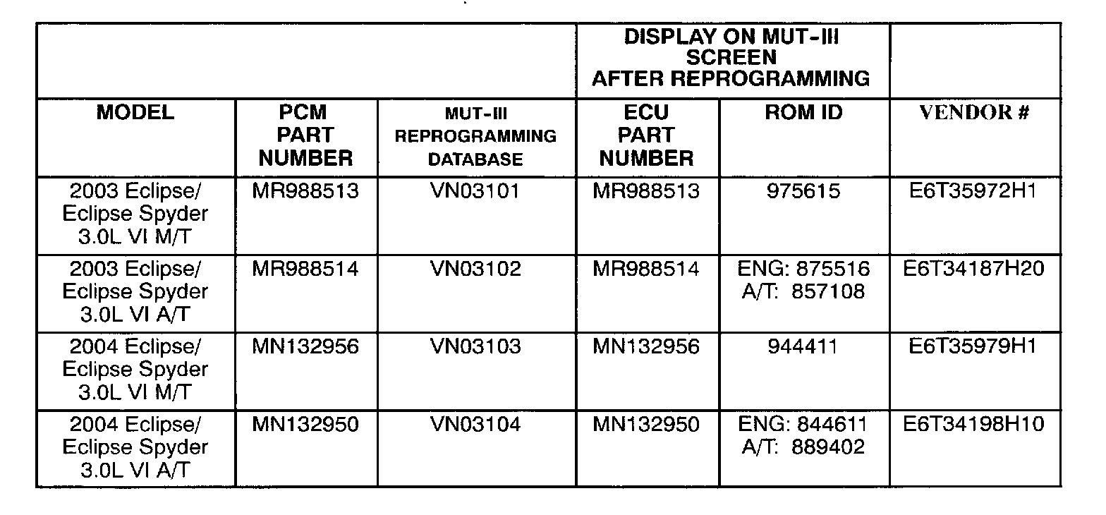 This TSB supercedes TSB-03-13-004, issued February 2003, to include manual transmission models, a new reprogramming database and MUT-III reprogramming procedures.
