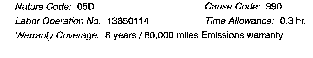11. Using a ball-point pen, enter the appropriate PCM part number, vendor number, ROM ID #, this TSB number TSB-04-13-003), your dealer code, and the current date on the Engine Compartment Label (part no. MSSF-024G-00).