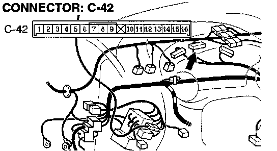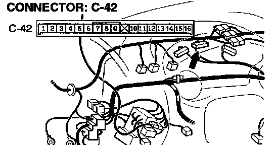 STEP 6. Check harness for open circuit or damage between PCM connector C-57 <2.4L Engine> or C-59 <3.0L Engine> terminal 80 and combination meter connector C42 terminal 30.