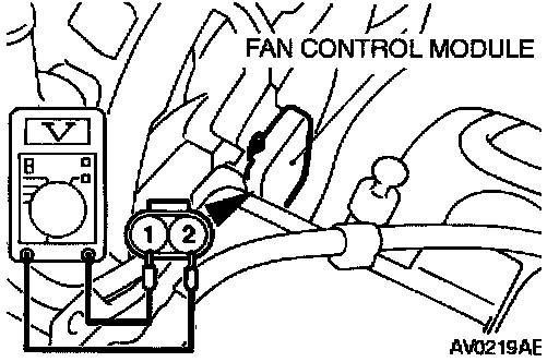 5. If the voltage does not repeatedly change as indicated, replace the radiator fan motor and the fan controller assembly.