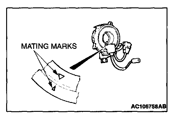 WARNING: Ensure that the clock spring's mating marks are properly aligned. If not, the steering wheel may not rotate completely during a turn, or the flat cable in the clock spring could be damaged. This would prevent normal SRS operation and possibly cause serious injury to the driver.