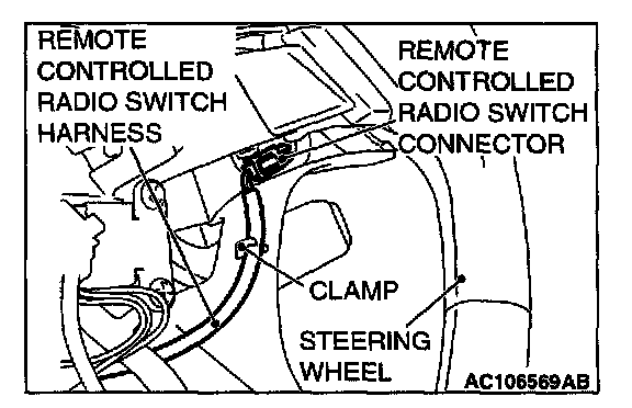 2. After installing the steering wheel, the remote controlled radio switch harness should be clamped at right and left sides.