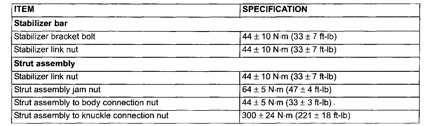 FASTENER TIGHTENING SPECIFICATIONS