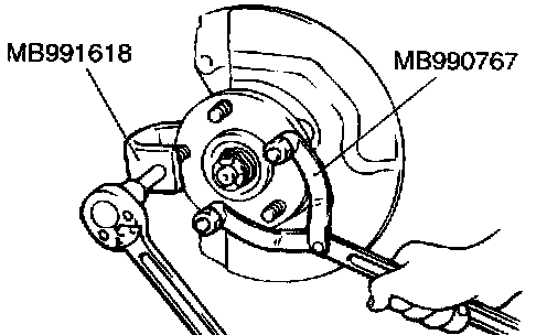 3. Use the special tools MB990767 and MB991618 to remove the hub bolts.