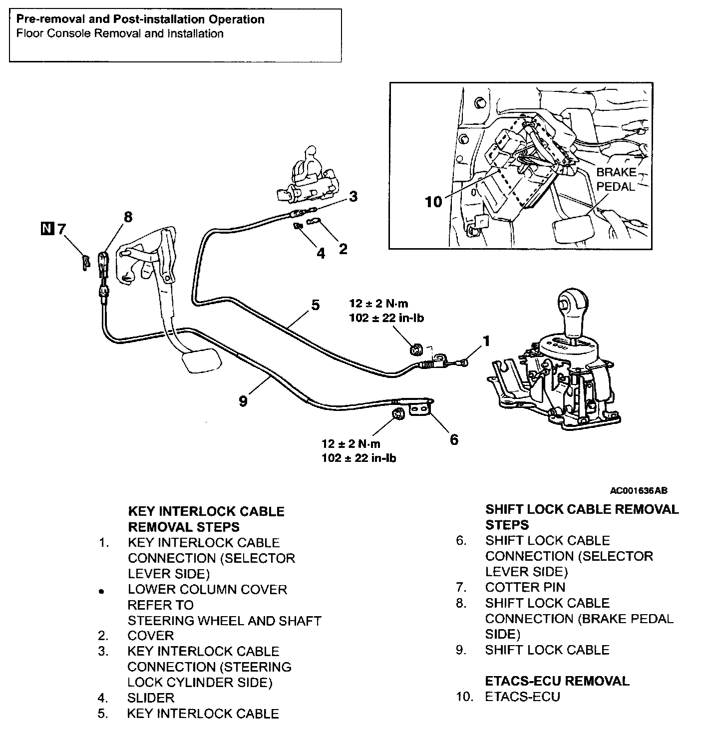 >>A<< SHIFT LOCK CABLE (SELECTOR LEVER SIDE) INSTALLATION