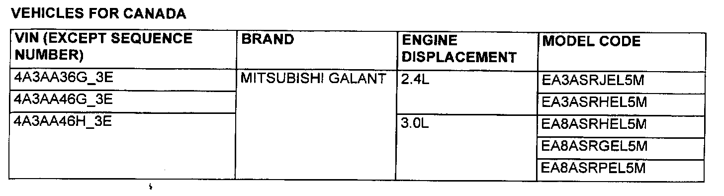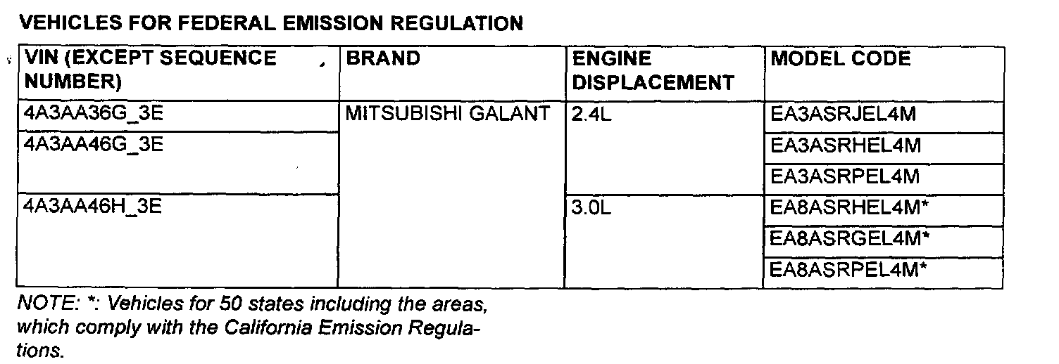 In order to protect against theft, a Vehicle Identification Number (VIN) is attached as a plate or label to the following major parts of the engine and transaxle, as well as main outer panels: