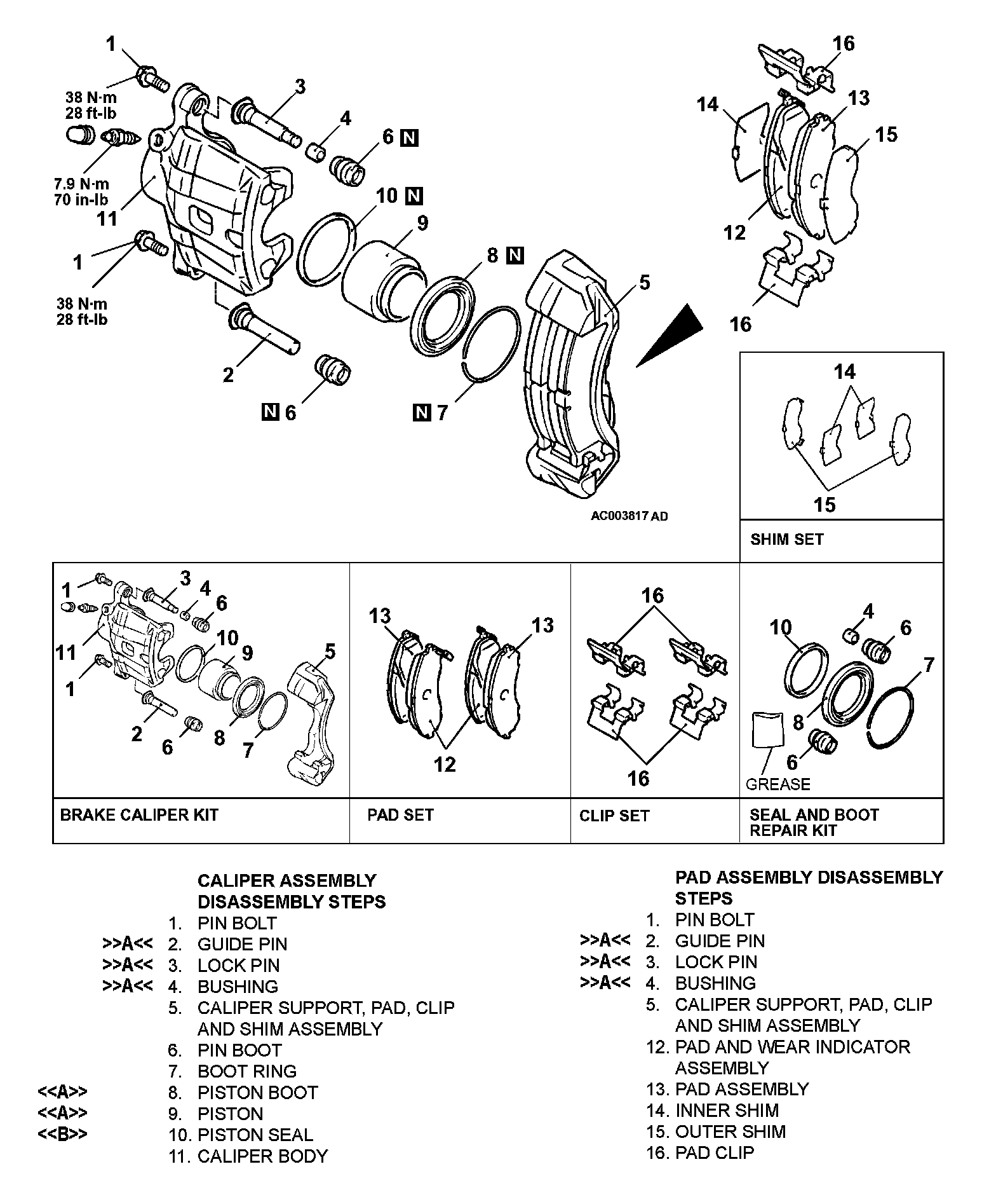 FRONT DISC BRAKE ASSEMBLY OVERHAUL W/ RELATED COMPONENTS