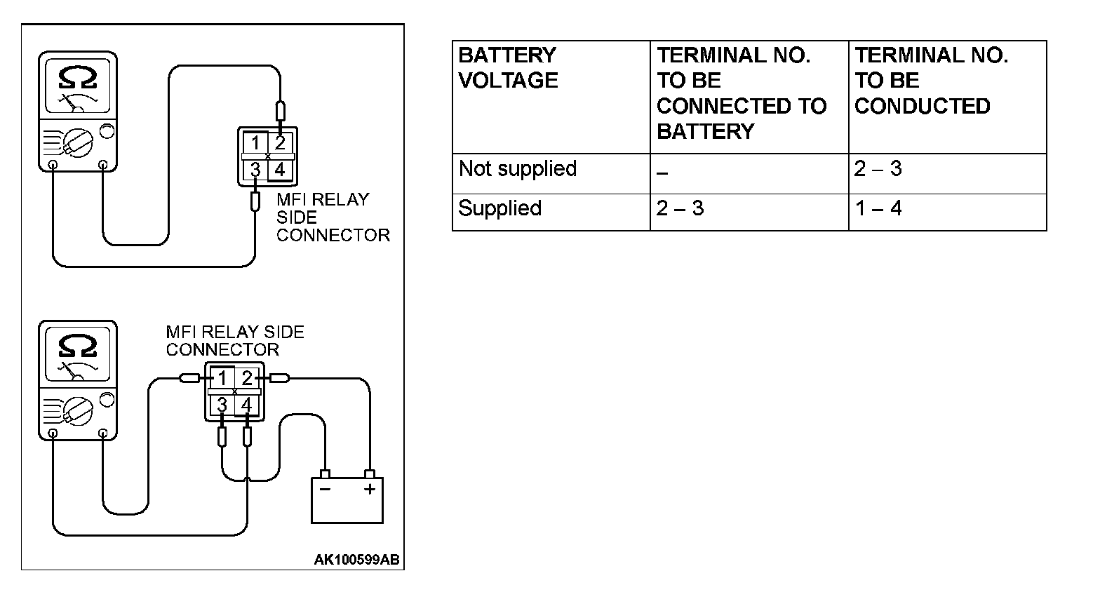 Multiport Fuel Injection (MFI) Relay Continuity Check: