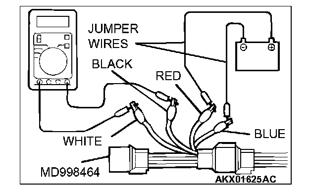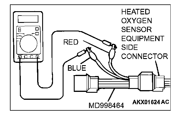 1. Disconnect the heated oxygen sensor connector and connect special tool MD998464 to the connector on the heated oxygen sensor side.