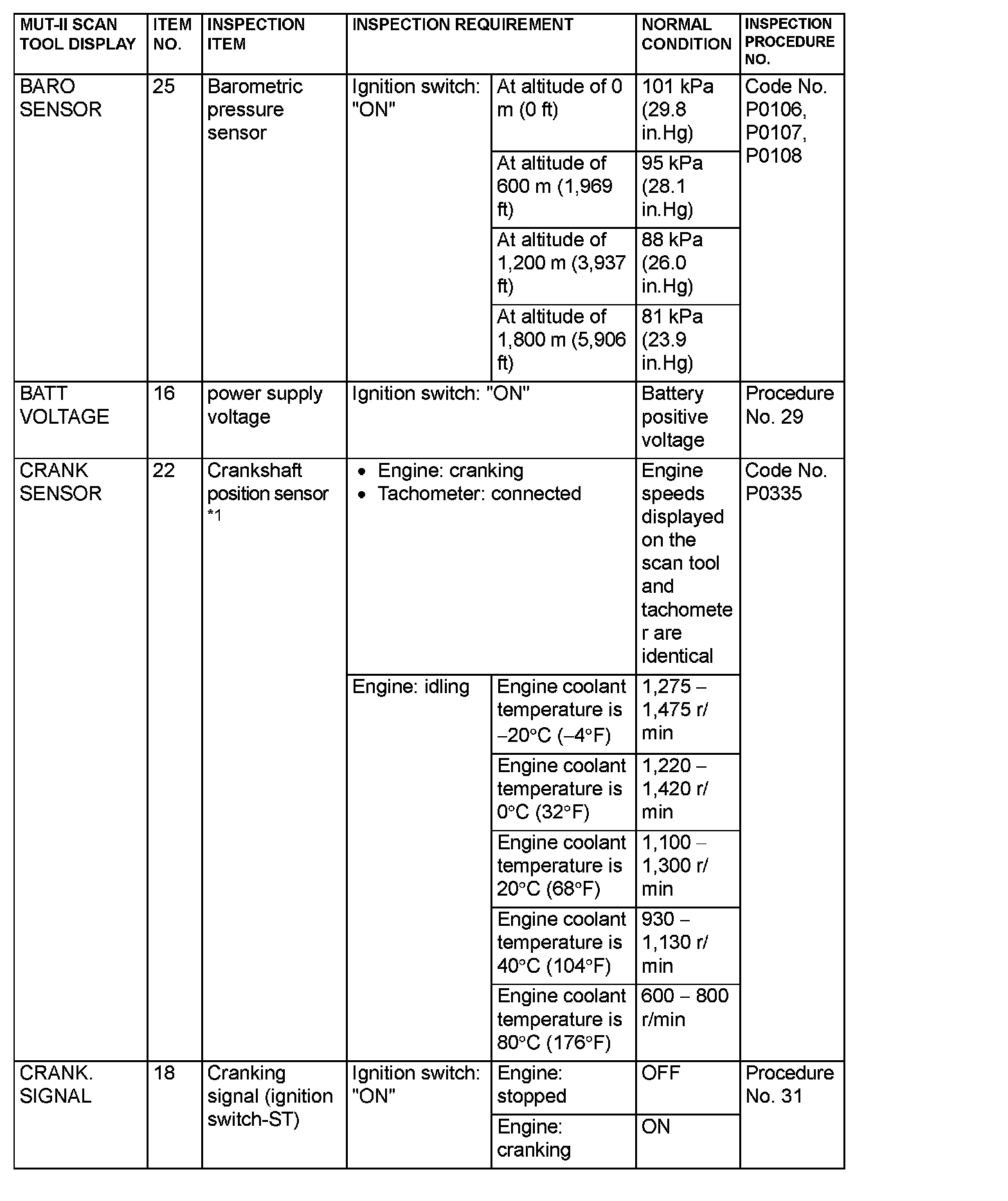 NOTE: *3: The injector drive time represents the time when the cranking speed is at 250 r/min or below when the power supply voltage is 11 volts.