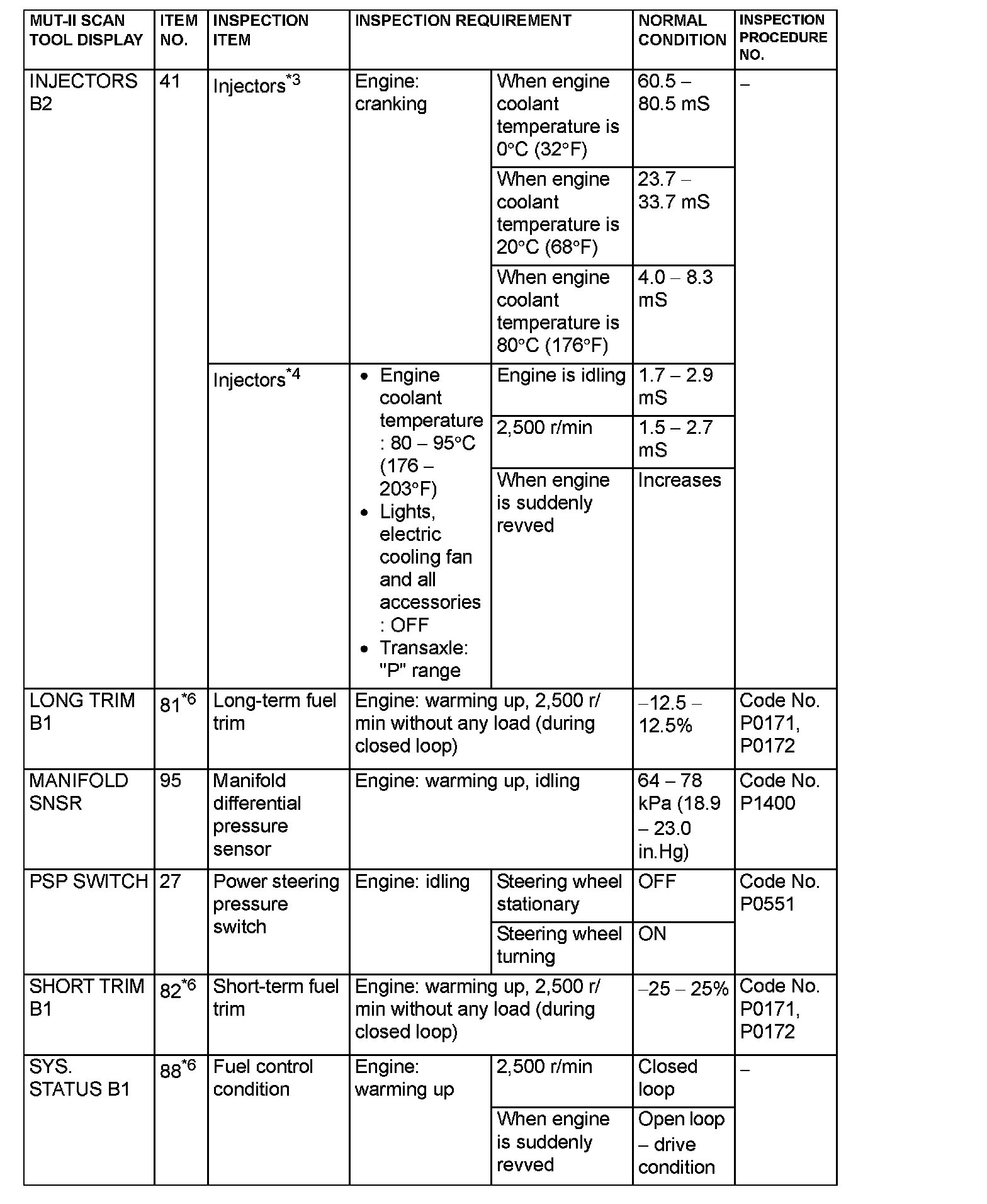 NOTE: *4: In a new vehicle [driven approximately 500 km (311 mile) or less], the injector drive time is sometimes 10 % longer than the standard time.