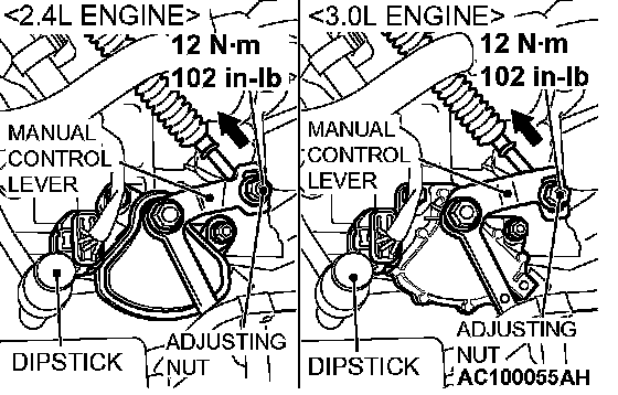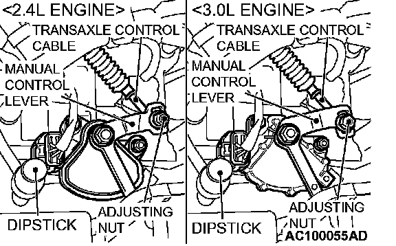 PARK/NEUTRAL POSITION SWITCH AND CONTROL CABLE ADJUSTMENT1. Set the selector lever to the "N" position.