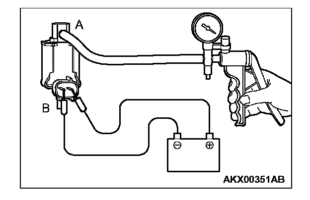 3. Connect a hand vacuum pump to nipple (A) of the EGR solenoid. (Refer to the illustration.)
