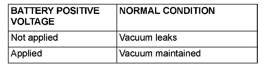 4. As described in the chart, check airtightness by applying a vacuum with voltage applied directly from the battery to the EGR solenoid and without applying voltage.