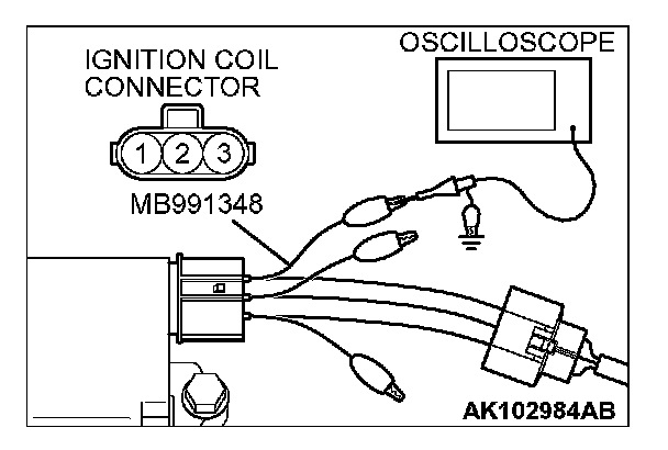 2. Connect the oscilloscope probe to ignition coil connector terminal 3.