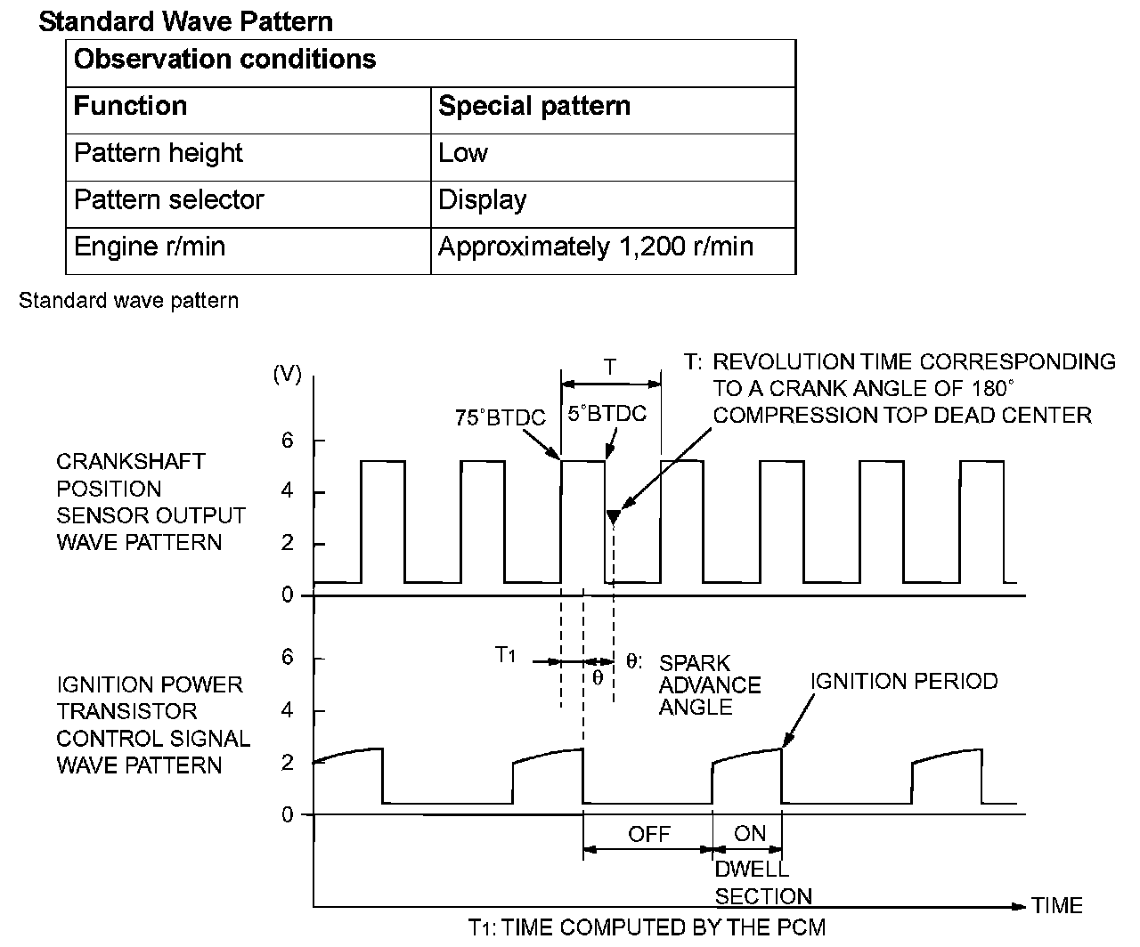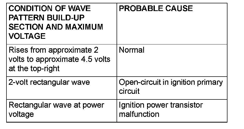 Point: Condition of wave pattern build-up section and maximum voltage (Refer to abnormal wave pattern examples 1 and 2).