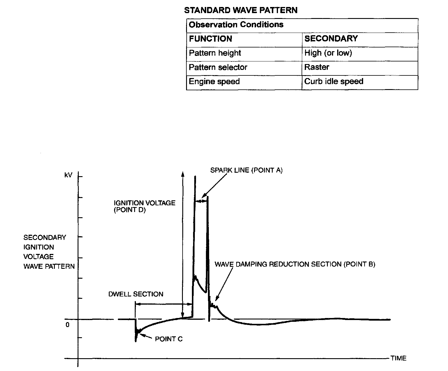 IGNITION SECONDARY VOLTAGE WAVE PATTERN CHECK USING A OSCILLOSCOPE