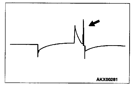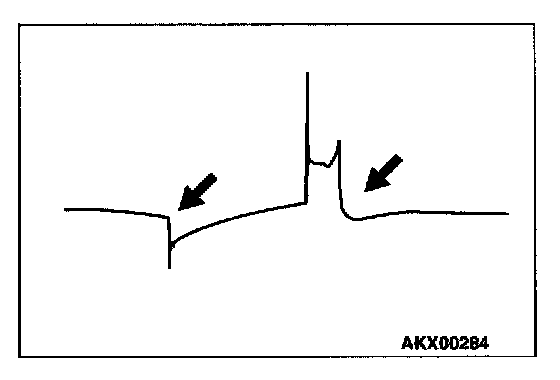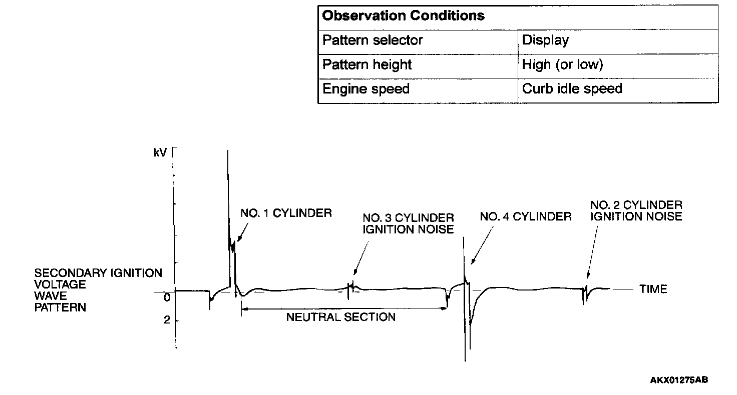 NOTE: Because of the two-cylinder simultaneous ignition system, the waves for two cylinders in each group appear during wave observation. However, wave observation is carried out for the cylinder (Number 1 or 3) with the spark plug cable which has been clamped by the secondary pickup.