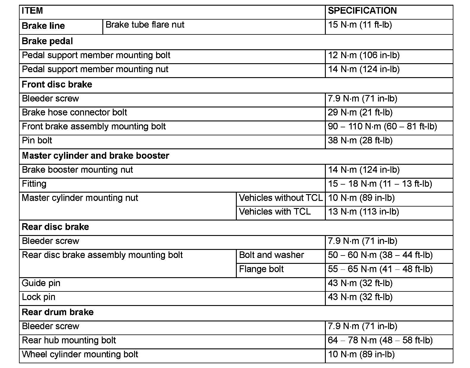 FASTENER TIGHTENING SPECIFICATIONS