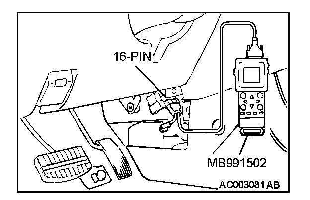 CAUTION: To prevent damage to scan tool MB991502, always turn the ignition switch to the "LOCK" (OFF) position before connecting or disconnecting scan tool MB991502.