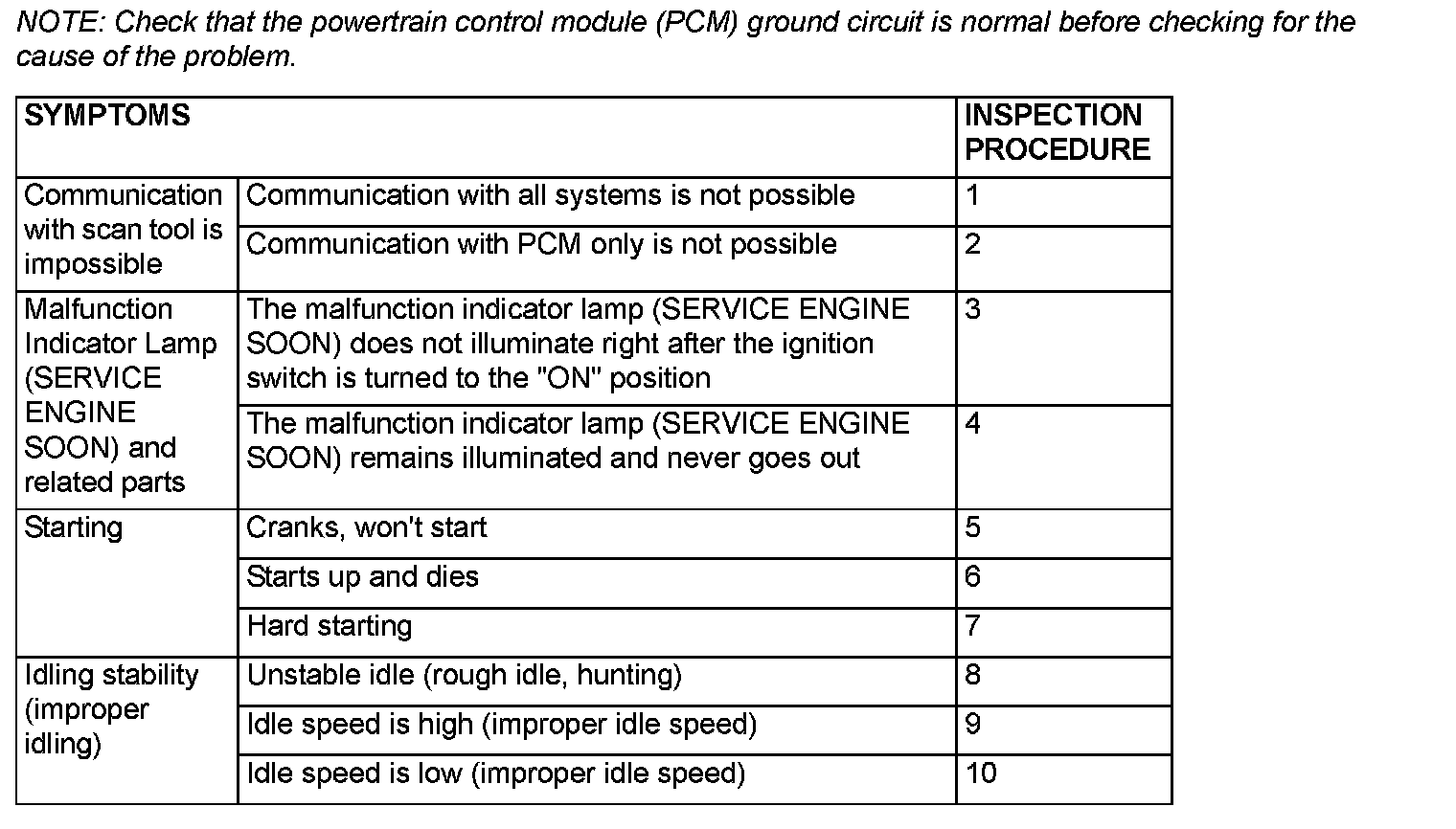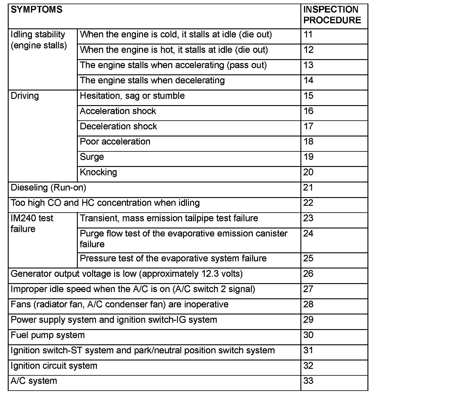 Problem Symptoms Table (For Your Information) Part 1: