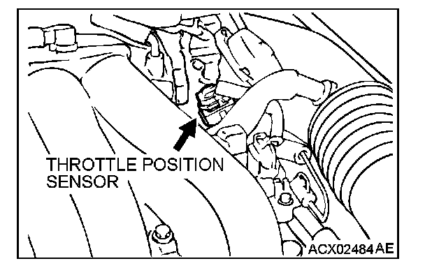 6. Disconnect scan tool MB991502, and connect the throttle position sensor connector. When the scan tool is not used, remove special tool MB991348, and connect the throttle position sensor connector.