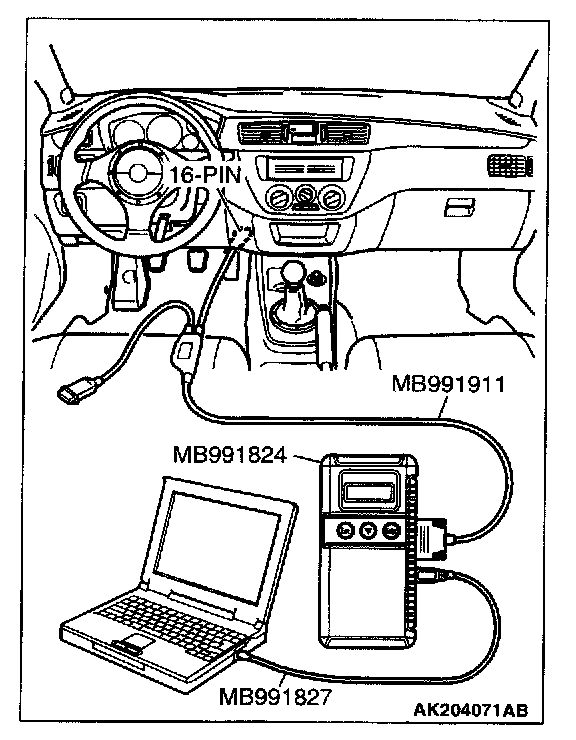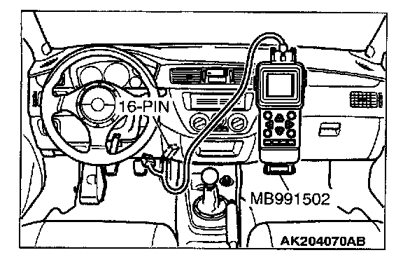 1. Connect scan tool MB991502 or MB991958 to the data link connector.