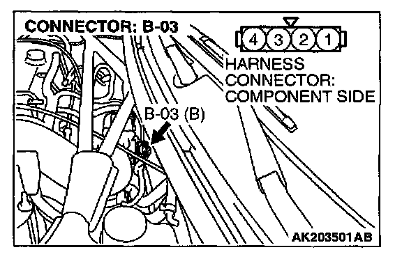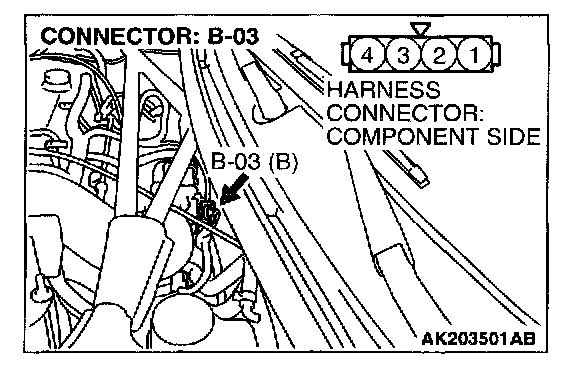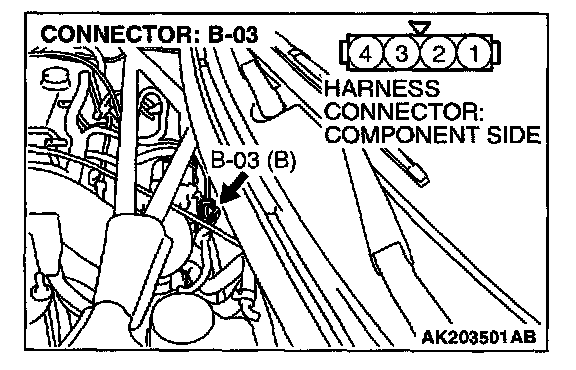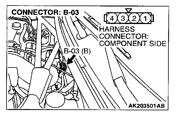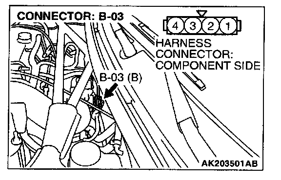 STEP 3. Measure the sensor supply voltage at throttle position sensor harness side connector B-03.