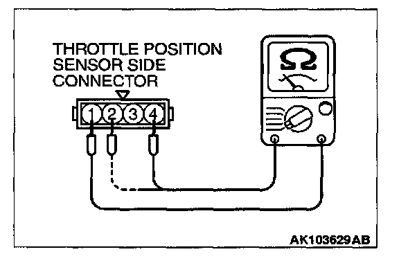 2. Measure the resistance between throttle position sensor side connector terminal No. 1 and No. 4.