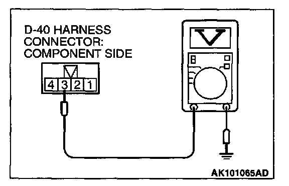 1. Disconnect connector D-40 and measure at the harness side.
