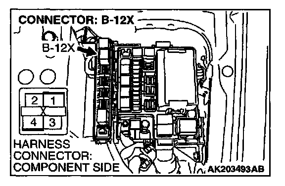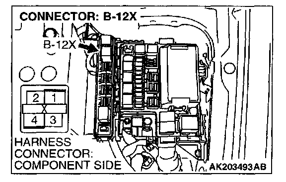 STEP 4. Check harness connector B-12X at the MFI relay for damage.