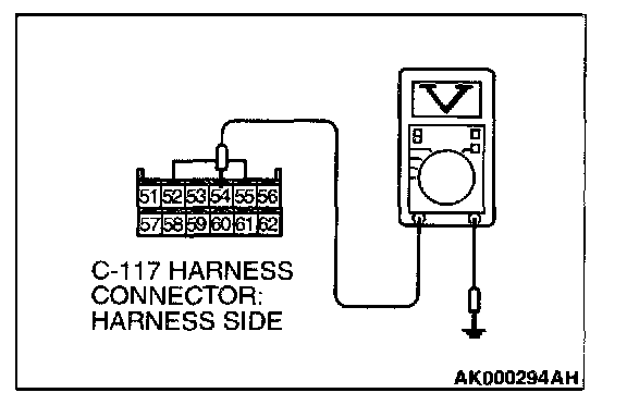 STEP 5. Measure the power supply voltage at ECM connector C-117 by backprobing.