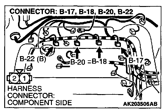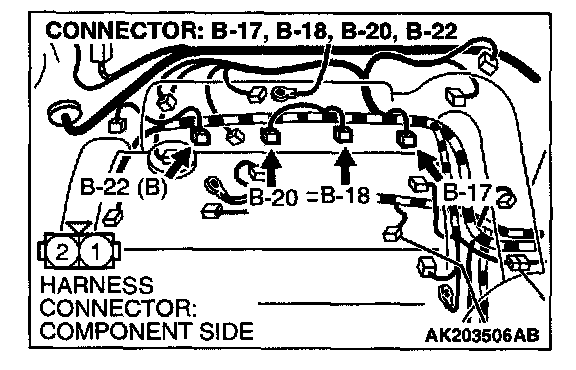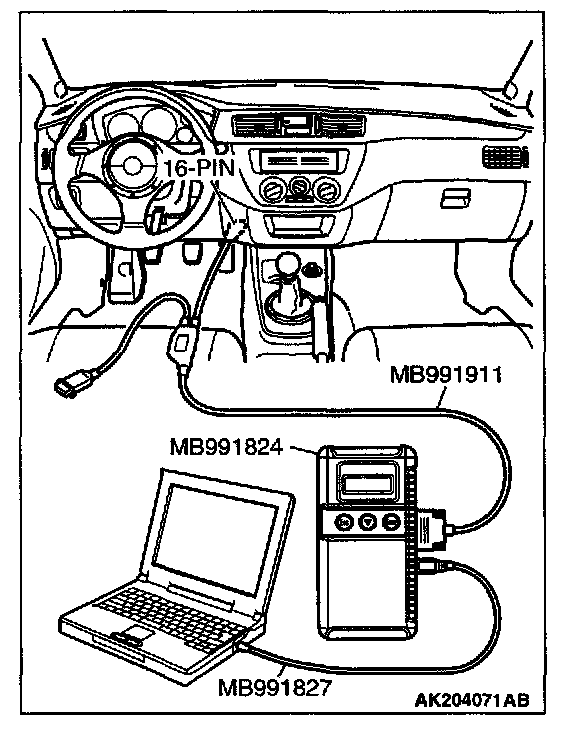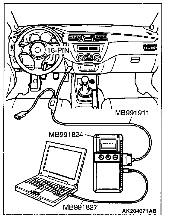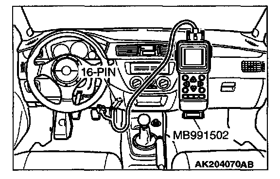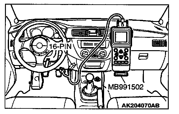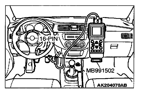 1. Connect scan tool MB991502 or MB991958 to the data link connector.