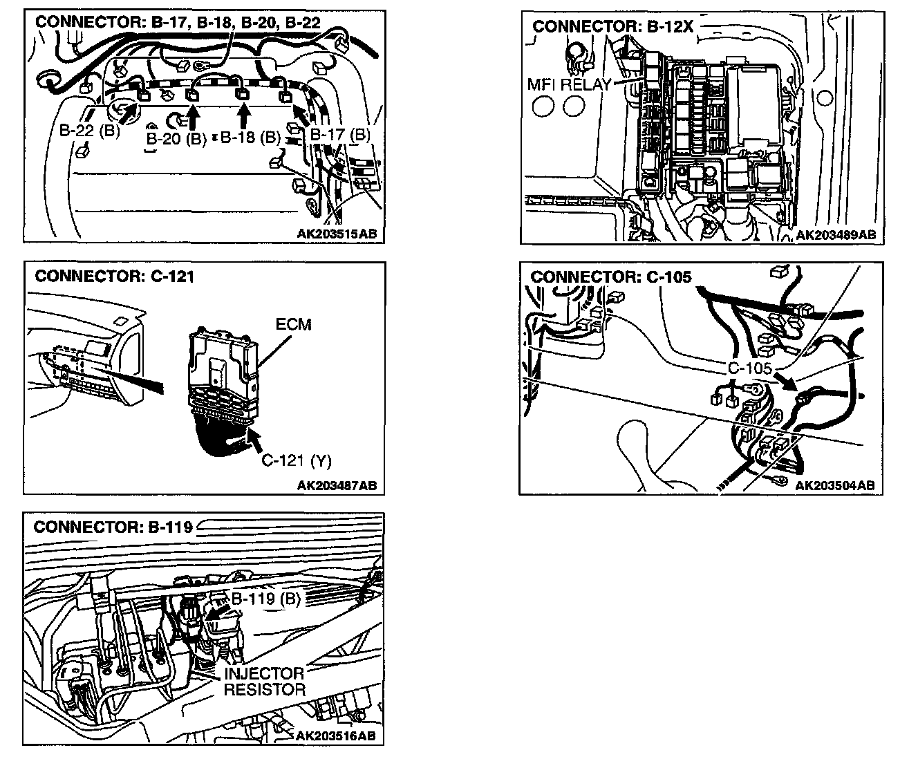 1. Disconnect the injector resistor connector B-119.