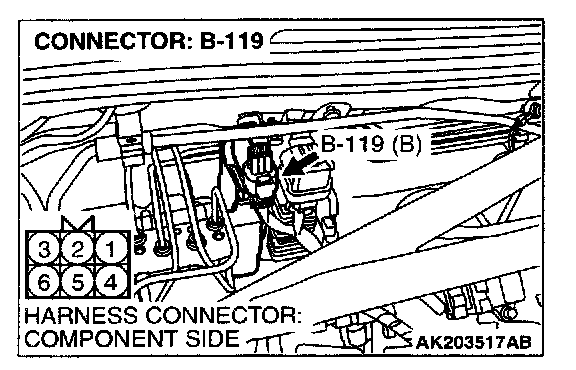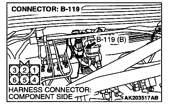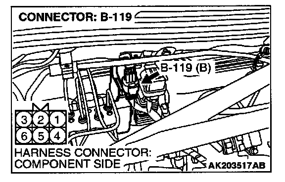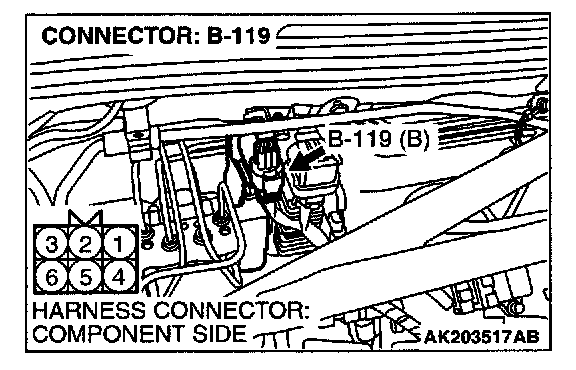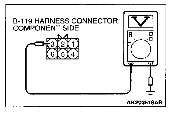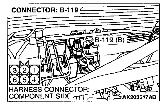 1. Disconnect the connector B-119 and measure the harness side.