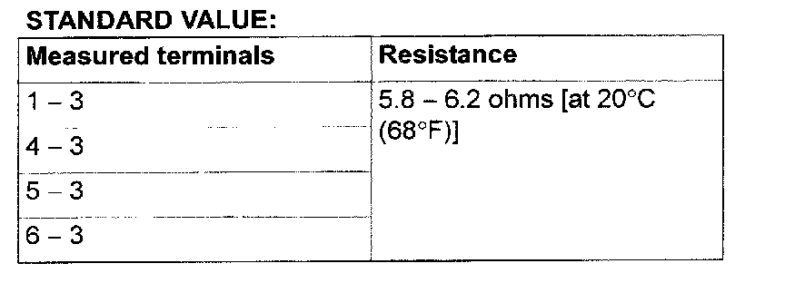Standard value: 2 - 3 Ohms [at 20 °C (68 °F)]