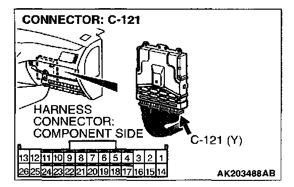 STEP 11. Check harness connector C-121 at ECM for damage.