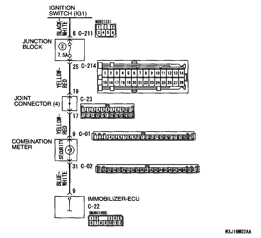 STEP 4. Check the wiring harness between combination meter connector C-02 (terminal 31) and immobilizer-ECU connector C-22 (terminal 9).